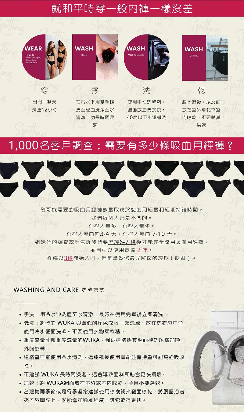 ●重度流量和超重度流量的WUKA,強烈建議將其翻面機洗以增加額外的旋轉。