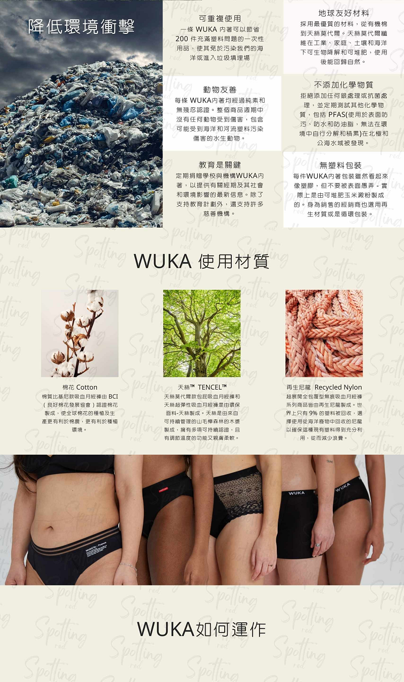 6.使用WUKA 2年後應該怎樣處理? WUKA皆使用對環境和動物友好的面料材質,可生物降解。您可以選擇將它們切碎並埋在地下,將它們丟棄在垃圾填埋場。請注意:唯一不可生物降解的部件是腰帶。